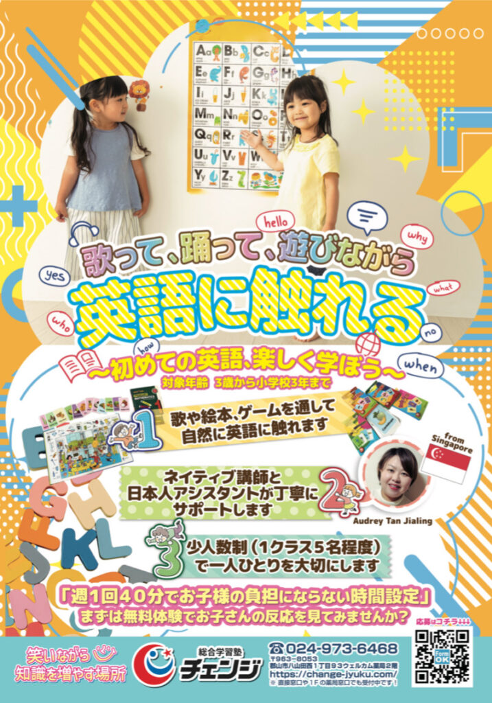キッズ英語クラスが始まります! Uncategorized 2025.12.02 3歳から小学3年生までを対象とした、ネイティブ講師によるキッズ英語クラスのご案内です。 まずは無料体験から始めてみませんか?
