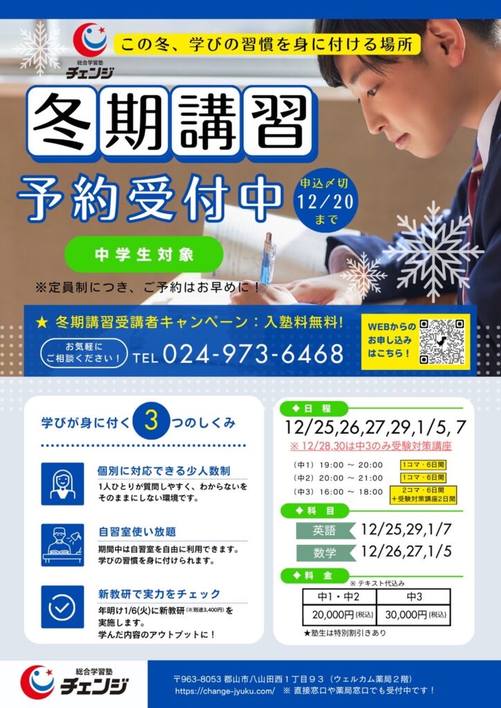 2025年冬期講習の予定になります。ご不明な点は、お気軽にお問い合わせください!
